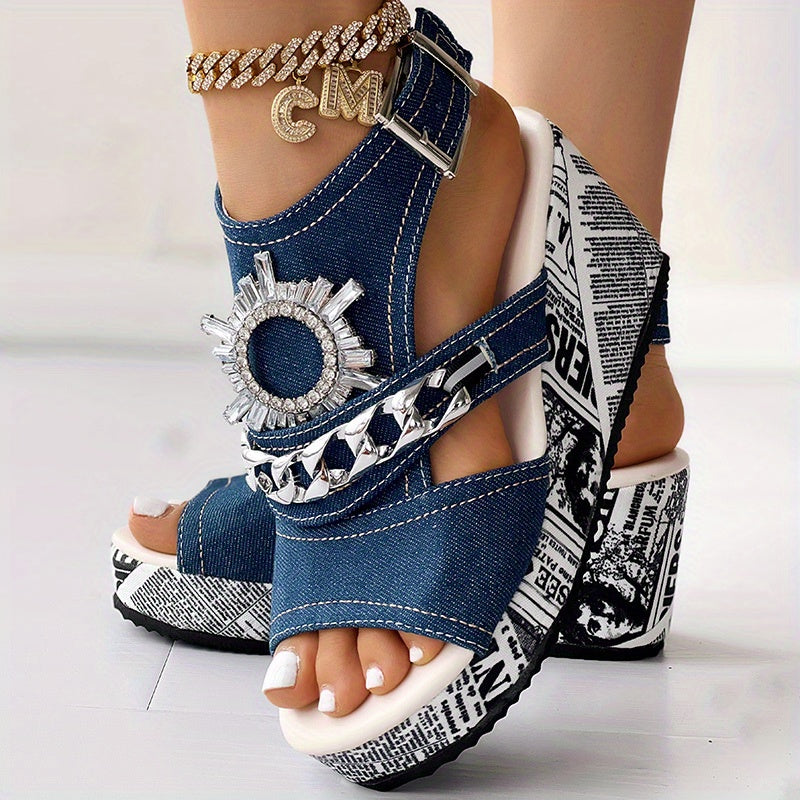 Dazzling Rhinestone Slingback Wedge Sandals for Women