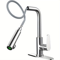 Digital Display PullDown Kitchen Faucet with Sprayer Silver
